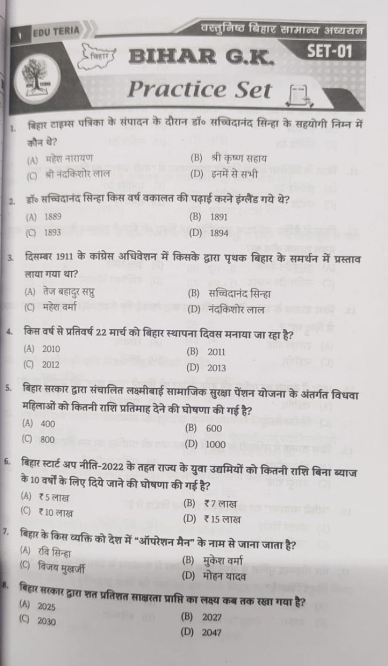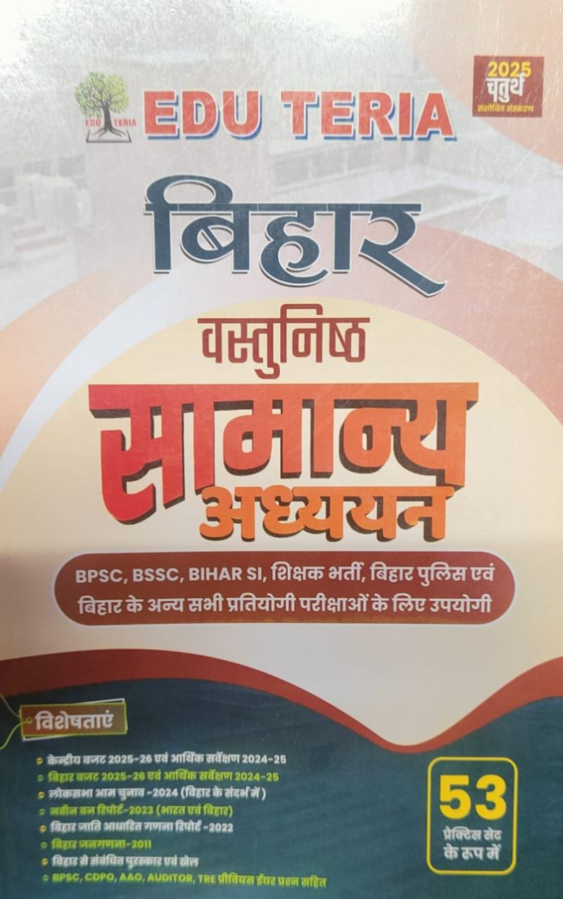 EDU TERIA बिहार वस्तुनिष्ठ सामान्य अध्ययन2025-26चतुर्थ संशोधित संस्करण (53 प्रैक्टिस सेट) हिंदी मीडियम