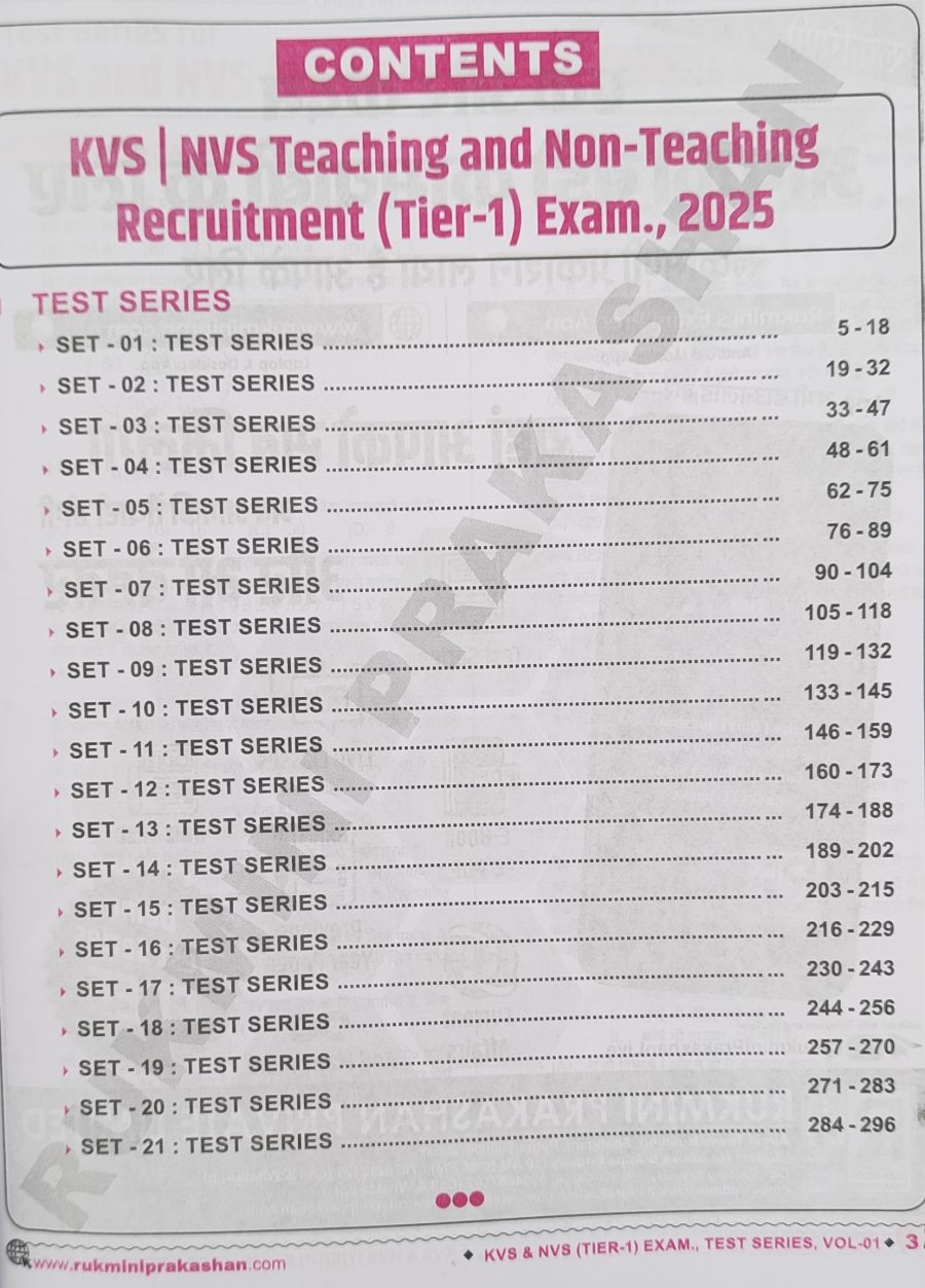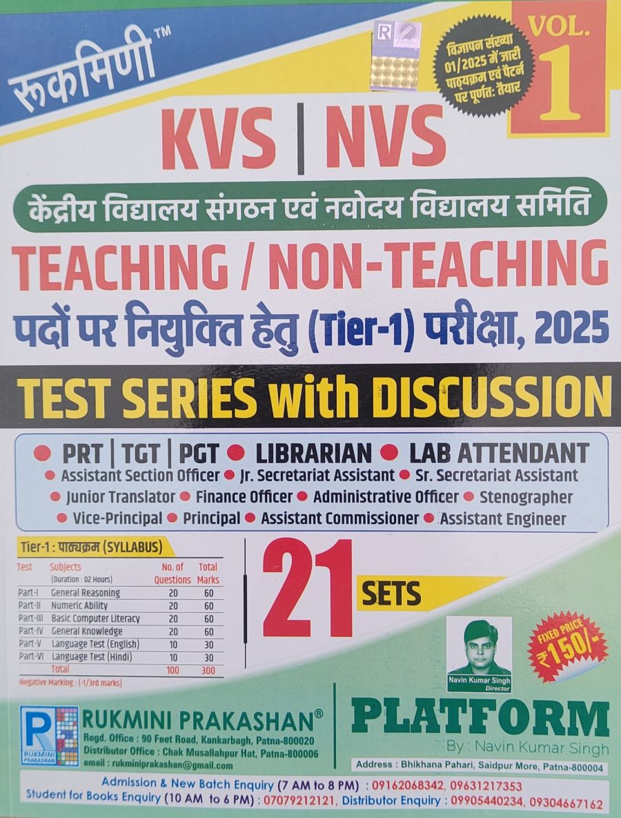 रुकमिणी केंद्रीय विद्यालय संगठन (KVS) एवं नवोदय विद्यालय समिति (NVS) Teaching and Non -Teaching पदों पर नियुक्ति हेतु (Tier -1) परीक्षा,2025 1st Edition,21 Sets Test series with discussion (हिन्दी मीडियम)